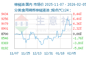 | 分类:食用精炼棕榈液油 ;熔点(℃):24 ; | 进口 | 9030元/吨 | 28 | 13.2 | 2026-02-05 | |