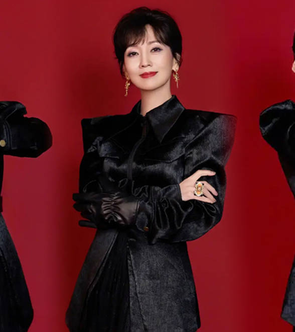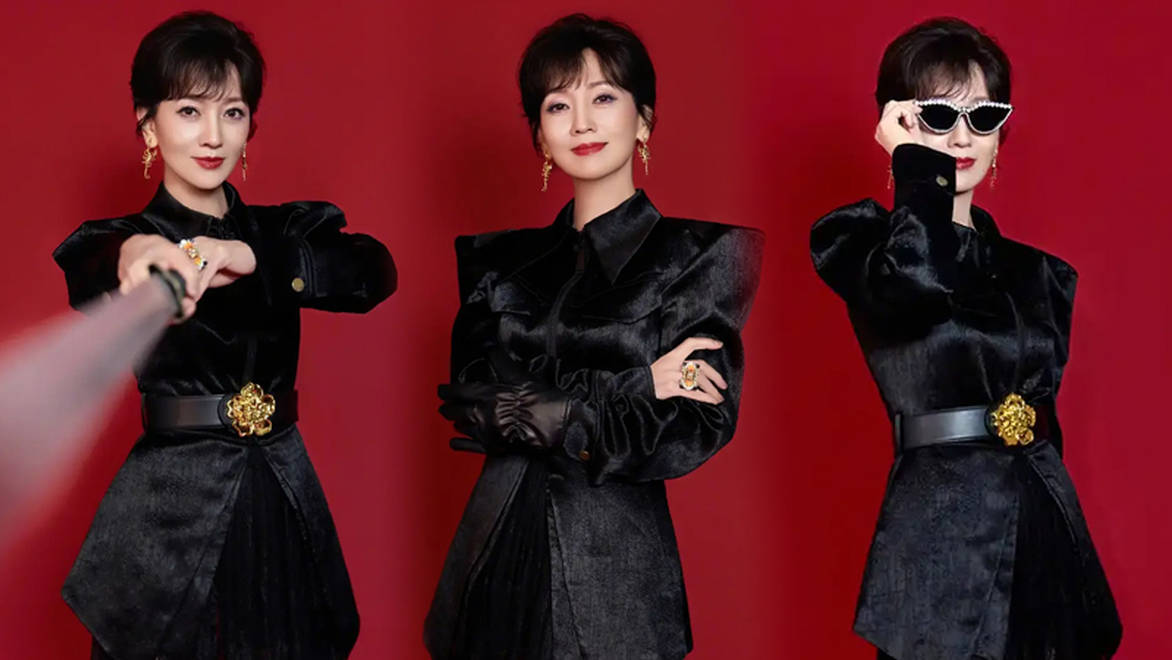 赵雅芝一袭黑衣飒爽帅气,单手持剑尽显侠女气质