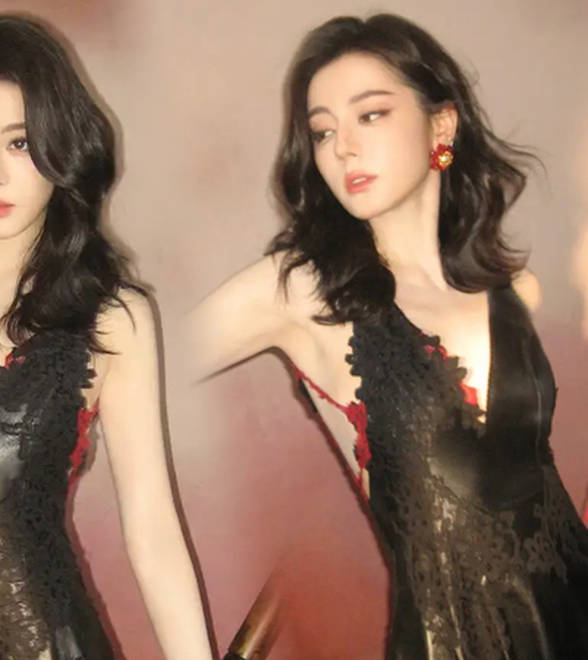 迪丽热巴穿深V长裙性感撩人,单手提灯妩媚多情