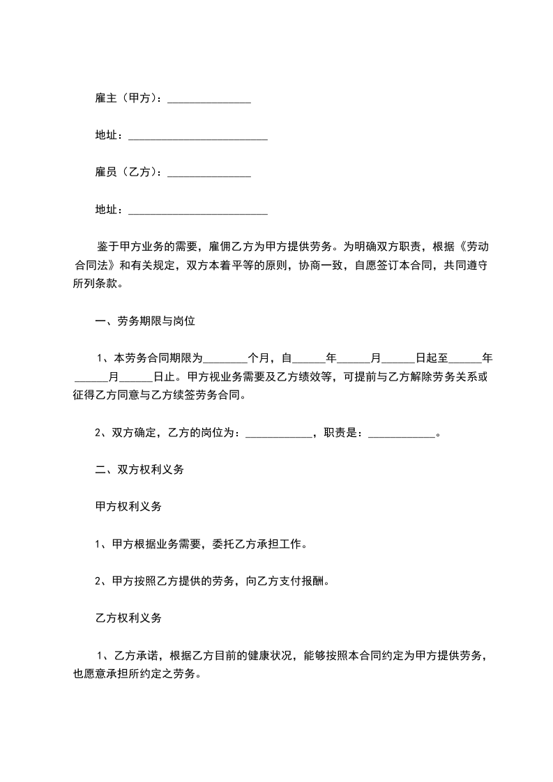#劳动劳务# 分区共4 份合同范本可直接下载使用