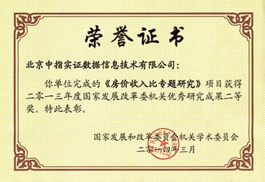 2013年《房价收入比专题研究》荣获“国家发展改革委机关优秀科研成果二等奖”