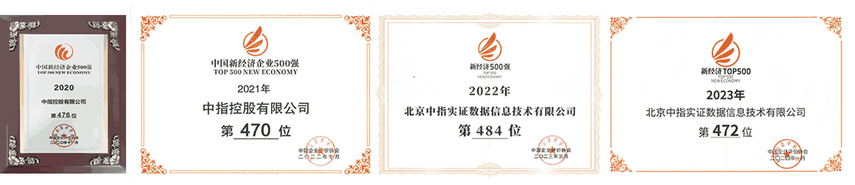 2020年-2021年中指控股连续入选“中国新经济企业500强”