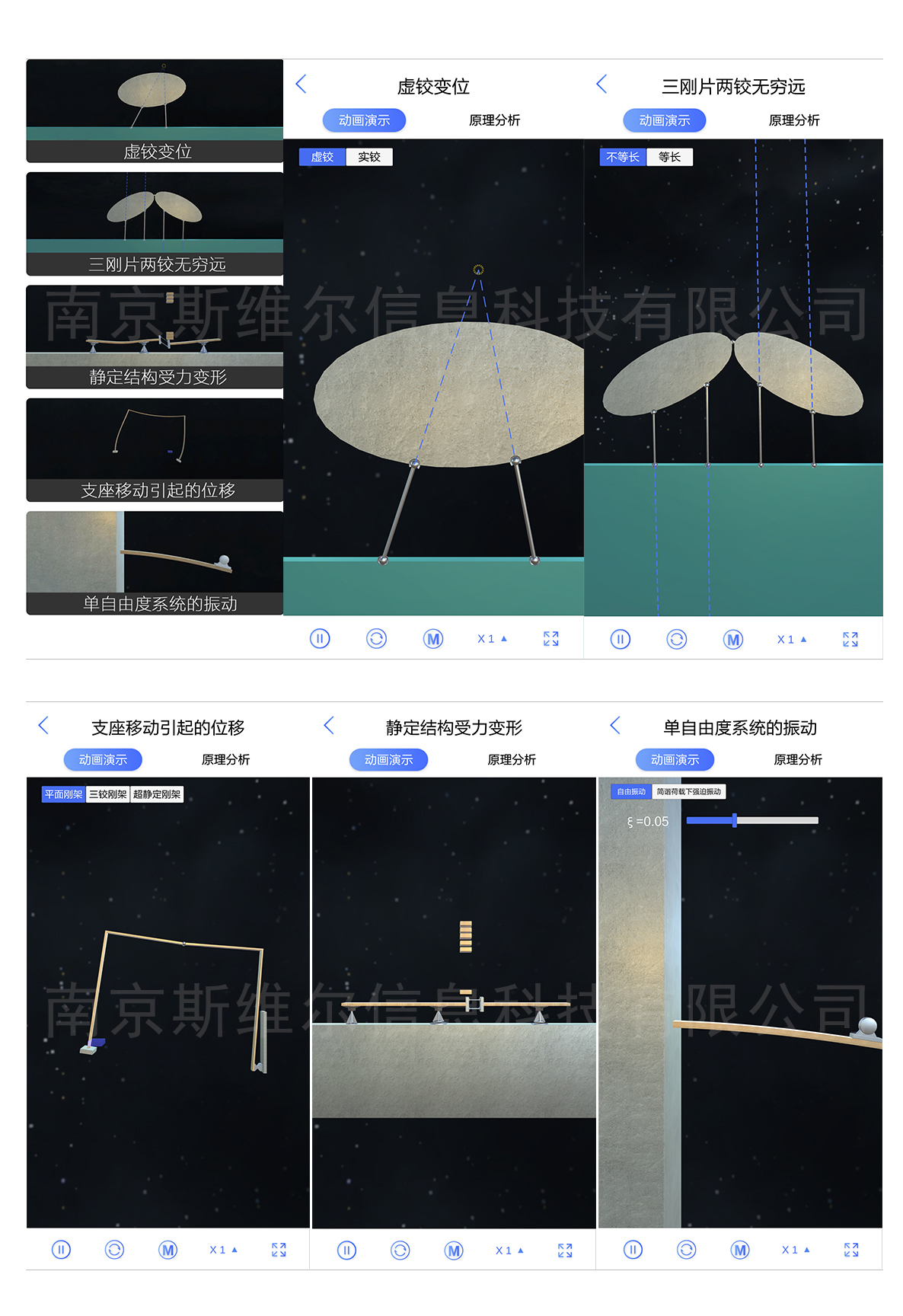 针对《结构力学》课程试验配套开发,通过3D虚拟仿真技术,实时运算展现结构力学教学内容,使公式可视化,化抽象为形象,变纯理论威