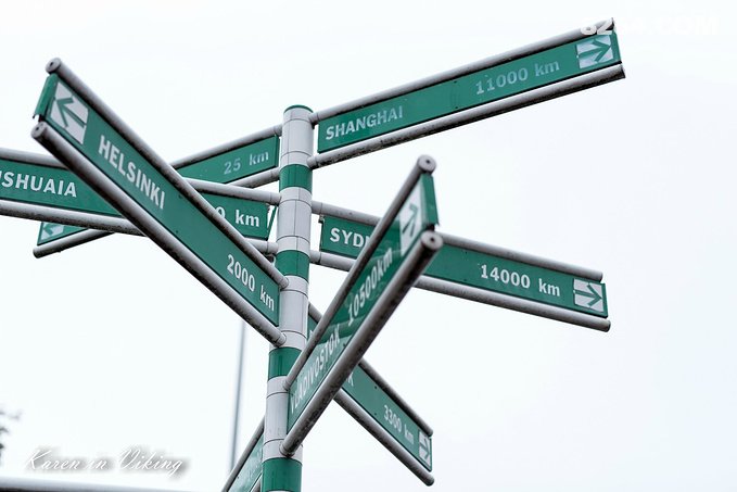 路边遇到的路标,还特意标从车里距离上海的路程是多远。