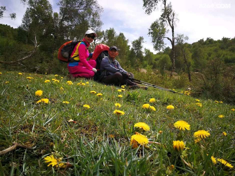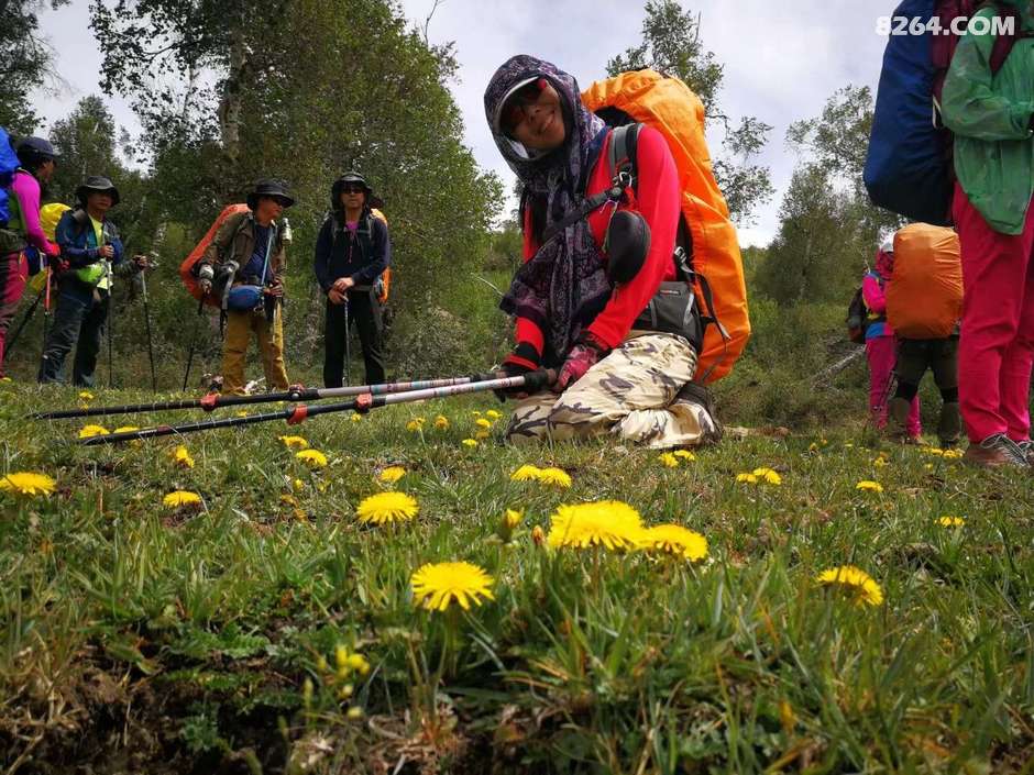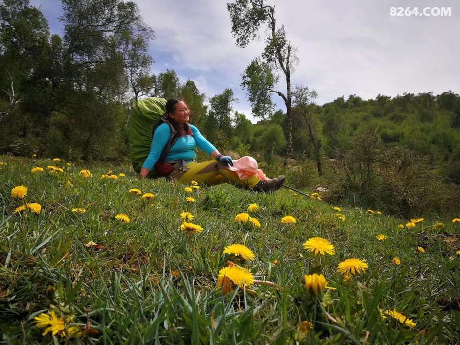 人人脑包垭口下,开满了黄色的蒲公英花朵,美极了,大家不停的拍,呵呵,愿时光能缓!!湖北驴友快乐行!
