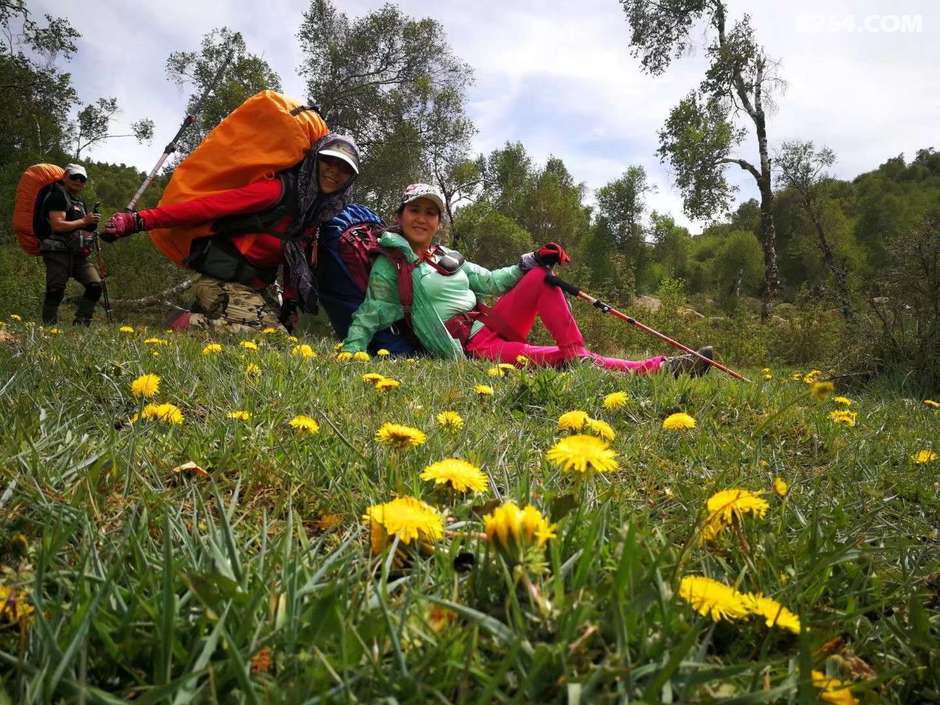 上到一个小垭口,看到了满眼的黄色花朵,学名披针叶野决明,具有治疗咳喘,通便的功效~!大家合影!!!