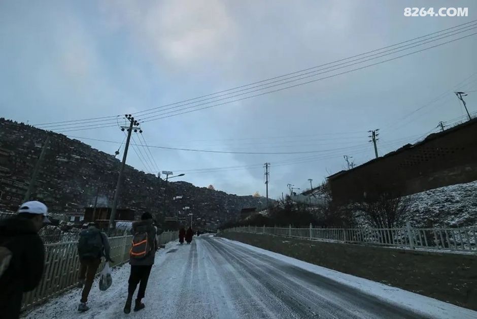 | 170202 临时改了行程,提前一天前往 色达 。没有面包,没有水果,就是这么着急。 06:20出发,17:50到佛学院大门路口下车,颠簸的路上,依着车窗,眯着眼看窗外不断变幻的妖娆曲线,不用思考那三房两厅,也没有中式欧式三点式。景逢知己千年少,能忆天涯心里人,不一定非要36D,每个人心中都有属于自己的“香 巴拉 ”。徒步3公里从路口走到了喇荣宾馆,一路的小雪一路的头疼。 由信仰的力量产生的建筑群,这美,不可思议! 喇荣宾馆住了四人间(人均50元,业界的良心),没有独卫,但公卫有热水,床有电热毯,这条件很满足。 早安的 成都 ,晚安的 色达 ,安在佛学院这片4000海拔的灯火阑珊!