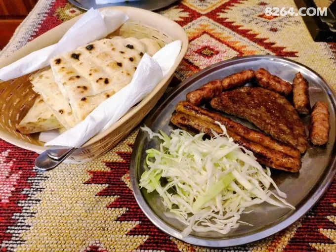| 一路望去,道路两旁都是各种咖啡馆、面包店、手工艺品商店,咖啡和面包的香气吸引着不少游客驻足,充满特色的手工艺品也引得不少人上前问价;偶尔在路边遇到在外揽客的伙计,见到我们的 亚洲 面孔时,还会说几句怪腔怪调的中文,引得我们大笑。就这样,我们在这老城区里一边寻找餐馆,一边继续着瞎扯。 (Kuma)_ “还是挺热闹的啊,这里估计就是 萨拉热窝 的解放碑步行街了!” (YingYing)_ “嗯嗯,一会吃了饭我们再来逛逛吧?可以买点纪念品什么的!” (Kuma)_ “额,我们才到这边2天,先看看呗!” (YingYing)_ “前面有家餐馆,在谷歌上很多点赞哦!要不去试试!” (Kuma)_ “那还等什么,走起!” 走进这家看起来像足球俱乐部一样的餐馆,旁边两桌老外拼着桌子聊得热火朝天,除了他们就没别人了。看着时间已经到了将近9点,我们决定速战速决,早早吃完回去休息。 打开看不懂的菜单,想了想,干脆让服务员小哥推荐几道本地特色菜尝尝,再来上一瓶可乐提提气。不一会,小哥端上来一个综合烤盘,各种烤肉和烤肠搭配着几块烤过的饼子;一份炖得很融的豆子汤。试了一下,虽然看起来不怎么样,但是味道却意外的不错。 (Kuma)_ “这烤饼夹烤肉,整得跟肉夹馍似的,你说他们祖上是去过 中国 的吧?” (YingYing)_ “这是本地特色料理哦!” (Kuma)_ “这豆子都炖得快融了,不应该叫豆子汤,应该叫豆子糊!” (YingYing)_ “卖相是不怎么样,不过你倒是吃一个看啊,评论家!” (Kuma)_ “嚼嚼嚼……味儿不错,香!” (YingYing)_ “……”