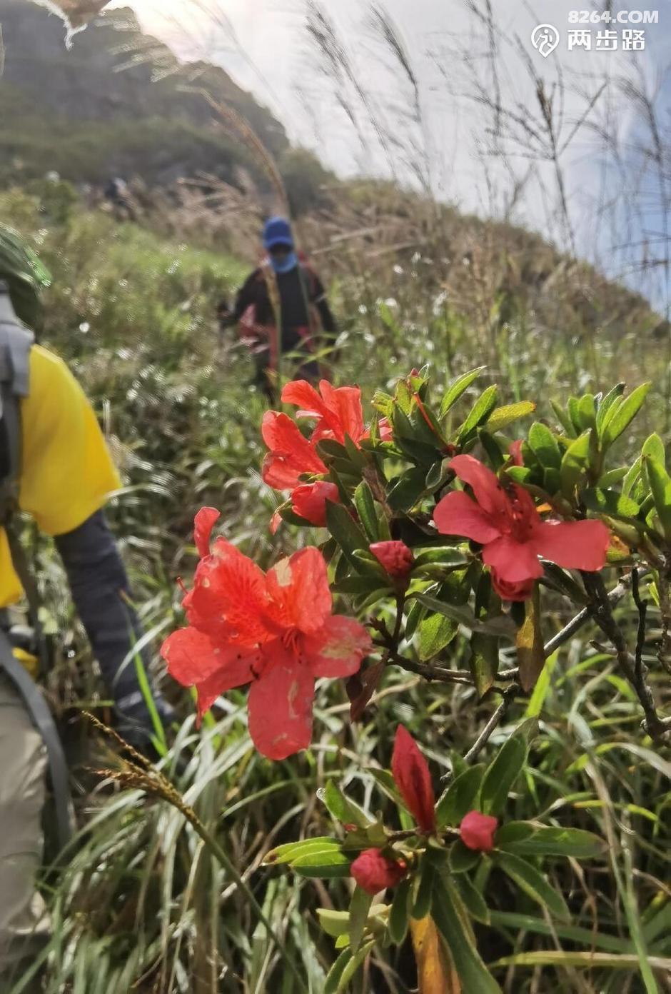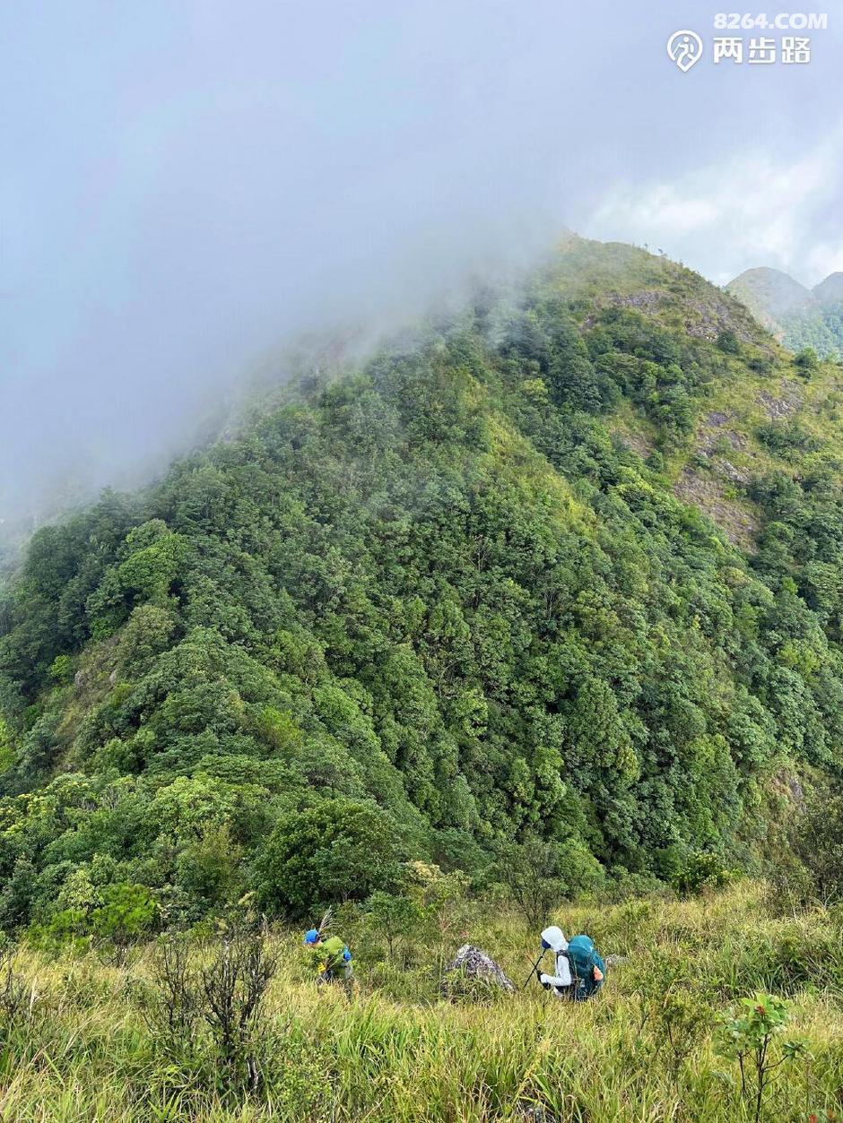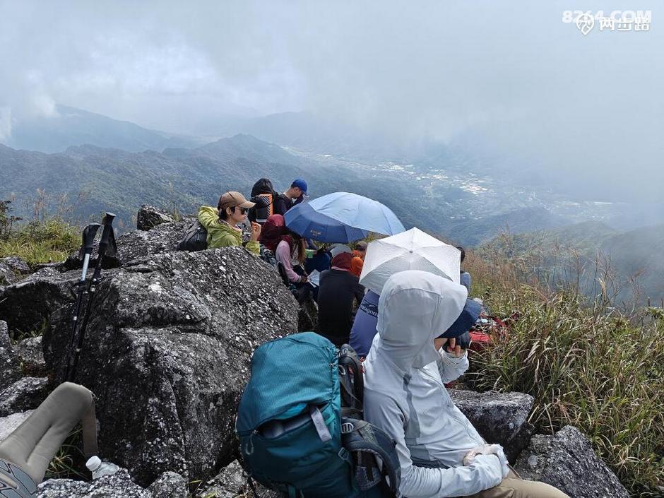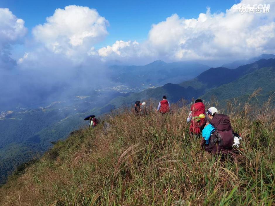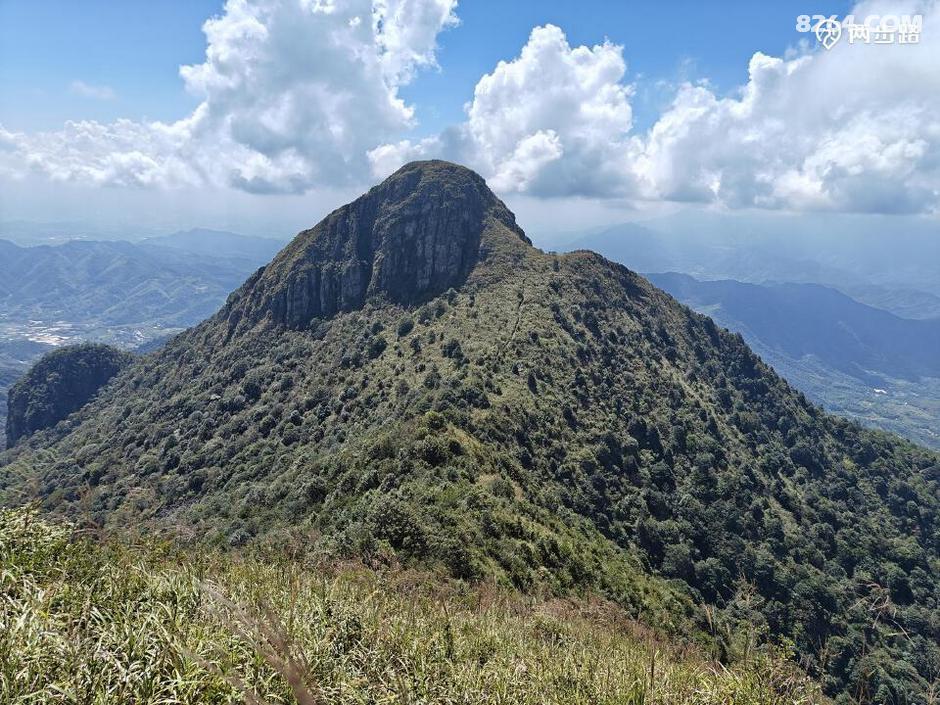 上午9点08分,我们终于登上了第一个顶——大门崎,这里海拔1448米,望着对面海拔稍高一些郁郁葱葱、深不见路、高耸入云、气势磅礴的山峰——鸡公崎,有点让人望而生畏!!!前队大概率在对面这个山头,鱼仔对着山头竭斯底里的呐喊: “丹神~、鲲哥~、sugar你这个老六~、阿楽~... ...” 对的,没错,sugar老早就跑前队去了,在不知不觉中!俺望着对面山头血压都要上来了,麻溜地卸包,咪咪摸摸掏出冰镇功能饮料,喝一口冰凉一下压压惊!然后再掏出冰镇红脆李,请大家吃(^.^)... ...。