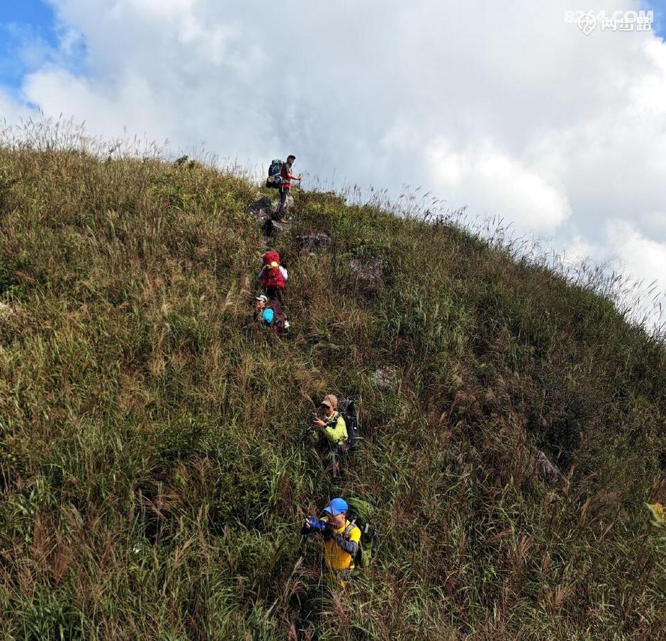 “妈妈呀,好滑”... ... 只听见“嘭”的一声,杰尼又滑倒了... ... 我们刚从悬崖下来,还得下一个比较陡的陡坡,这里又是芒草肆虐,都长到路上来了,于是,这芒草混着有点湿气的黑泥土被踩成了路,比德芙巧克力还丝滑,我们抓着两边的芒草一步一个试探小心翼翼,但还是避免不了摔个狗吃shi,杰尼倒是摔出节奏来了,一会摔,一会又摔,狼狈不堪... ...。 别人的痛苦就是俺们的快乐源泉,俺都要笑劈叉了,哈哈哈哈... ....。俺试了一下发现快步往下冲可以减少滑倒的几率,于是,俺就飞起来了,把杰尼和后面的人给甩了... ...