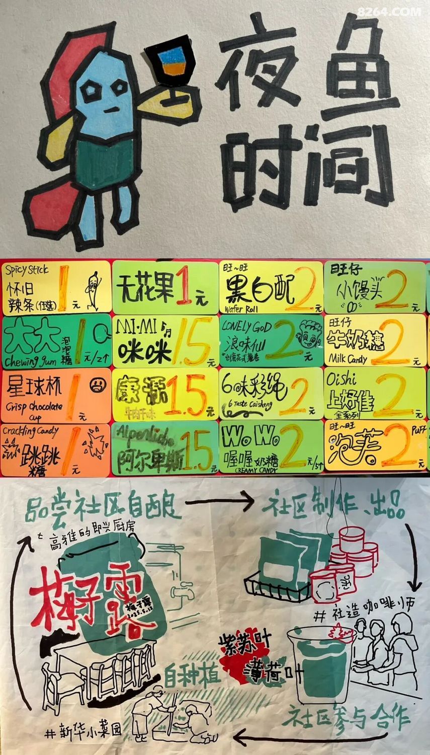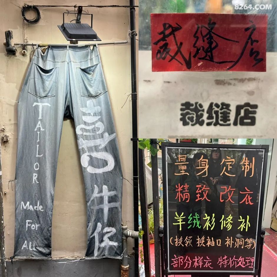 周末和新老朋友们组的新华路字体考现 citywalk 比预想的更好玩!宇欣一路上讲了不少街区与建筑的历史。大石则继续评测各种字体,并随时回答我们的小白问题。原计划三小时走到武夷路、利西路,结果边走边拍边聊,最终只走了不到一半的路程,索性把余下的区域留待下次。 其实只要细心观察,在街头巷尾就能发现许多非常有趣的字迹。这次我们不再仅仅关注招牌,而是把各处的字迹都囊括进来,捕捉到了许多有意思的细节。 从淮海西路拐进新华路,首先就能看到不少裁缝店,店面大都较小,但藏着许多好玩的手写字体,尤其是那条大牛仔裤(图1)。 荡马路的时候如果留意脚下,也能发现不少字迹。「漫步番禺」与「人文新华」是这边城市更新打造的两条特色街区,在法桐树下就能看到这些字的篆书,新华 345 弄也将儿童、宠物友好的理念印在了路面上,提醒车辆慢行(图2)。 除了千篇一律的各种黑体外,一些单独设计或请书法家写的字往往让我们眼前一亮(图3),「上海影城」四字就是上海著名书法家周慧珺所书。 与高雅书法相对,弄堂巷道里往往藏着很多野生手写字(图4):龙华寺的春联「玉蛇纳福」中象形的蛇颇为灵动;电线杆上「注意有电」的「意」写的是上乙下心,为二简字;在一个爷爷的小花园里我们发现了花盆上刻的竖版《山行》;新华·社区营造中心的一米菜园里则竖着很多可爱的手写木牌。「来!合作社」里更有许多好玩的字体,比如灵活的胶带字体(图5)和各种看似潦草、却非常自洽的手写体(图6),尤其那些是让我们找回童年的零食包装字体手写复刻版。留意各处角落,还能发现一些手写的印刷体,在装修广告中比较常见(图7)。 这一带也有些老字迹,在新华别墅里还能看到街道综治办的宣传牌(图8上)。同样也有极为新潮的字,例如我们在墙边发现的一只「宗」迹,据说上海街头藏着很多「宗」,但它的来龙去脉仍是一个谜(图8下)。 在《你看港街招牌》中,作者提到损毁的招牌也有价值,因为可从其残破的身躯中了解它的制作方式。结果我们还真找到一个坏掉的招牌:「碳中和小站」(图9):绿色「皮肤」脱落,露出白色「骨架」,钉子拼接的位置也暴露出来,这就是字体的解剖学。 夜幕降临后,新华 365 弄的一些小的伸出式招牌在墙上投下美妙的灯光(图10中)。行至法华镇路,肚子饿了,不妨以一笼法华汤包来结束这半日的散步罢。进店前,发现它拥有双重招牌,这通常也是实力的象征(图10下)。