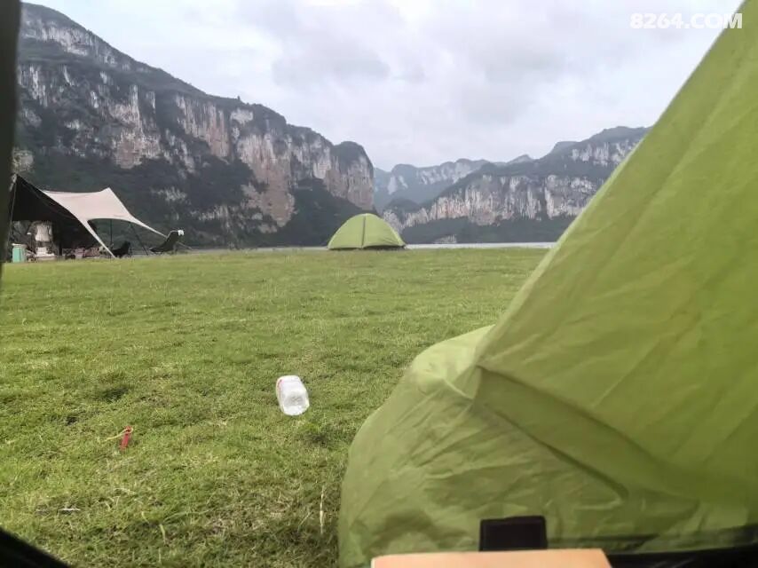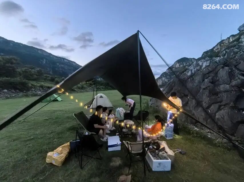 化屋基周边有比较成熟的露营基地,一条名不见经传的茶马古道,河边是一个滑翔伞的降落地。朋友的露营地选在河道边上的滑翔伞降落地边上,地面草坪厚实,岸边巨石刚好可以遮风,周边打理得很干净。水质清澈,水性好的还可以下河畅游一下,晚上豪放派来个裸泳也无人叨扰。河道两岸青山高耸气势磅礴,营地对面是水道交汇处,目之所及水道狭长悠远望不到头。要说是五星级营地也当仁不让。
