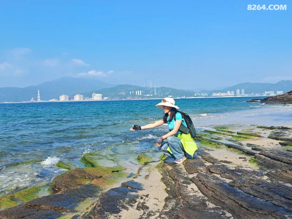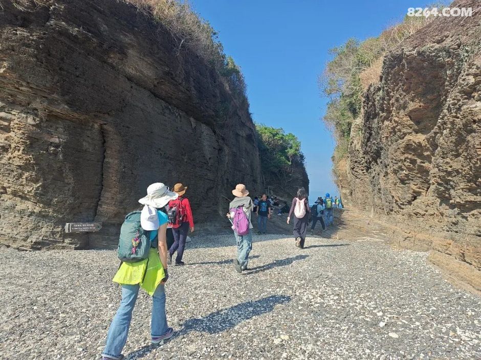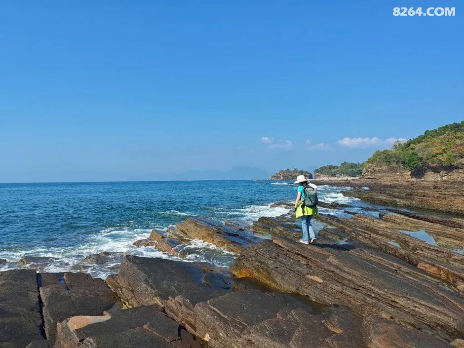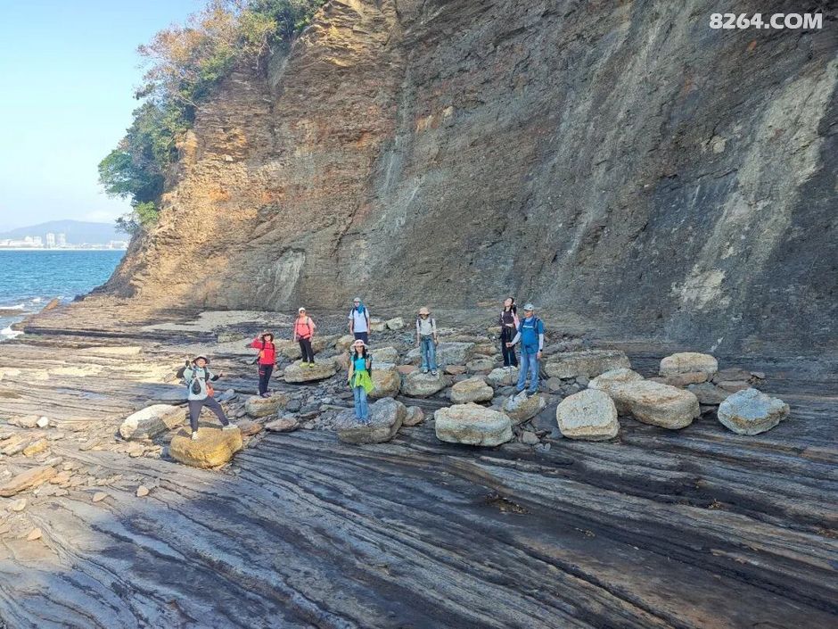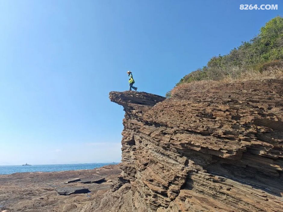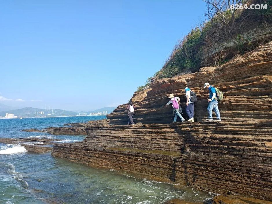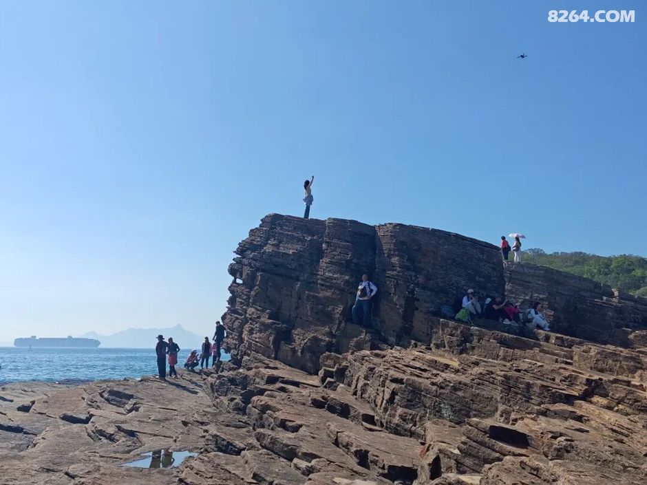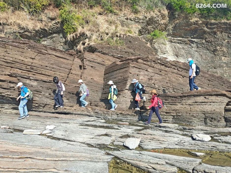 斩颈洲到洲尾角这一段,处处可见千层岩,岩层还布满蜂窝状,这也是海水不断侵蚀加上沙子不断打磨的结果。