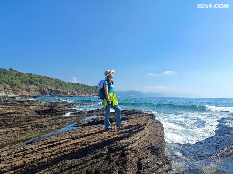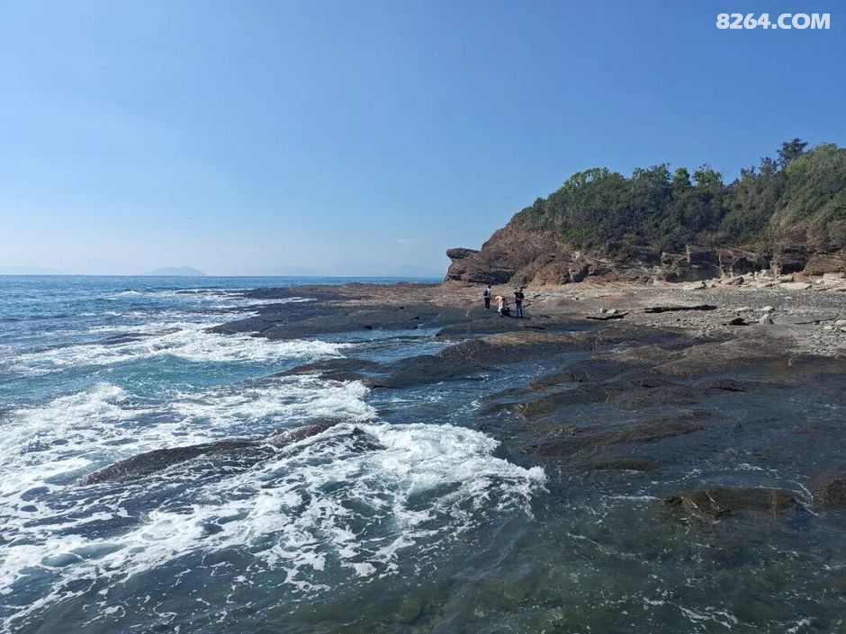 难过水,一大片海蚀平台,这里比较陡峭,需绕到前方才能下到海滩。
