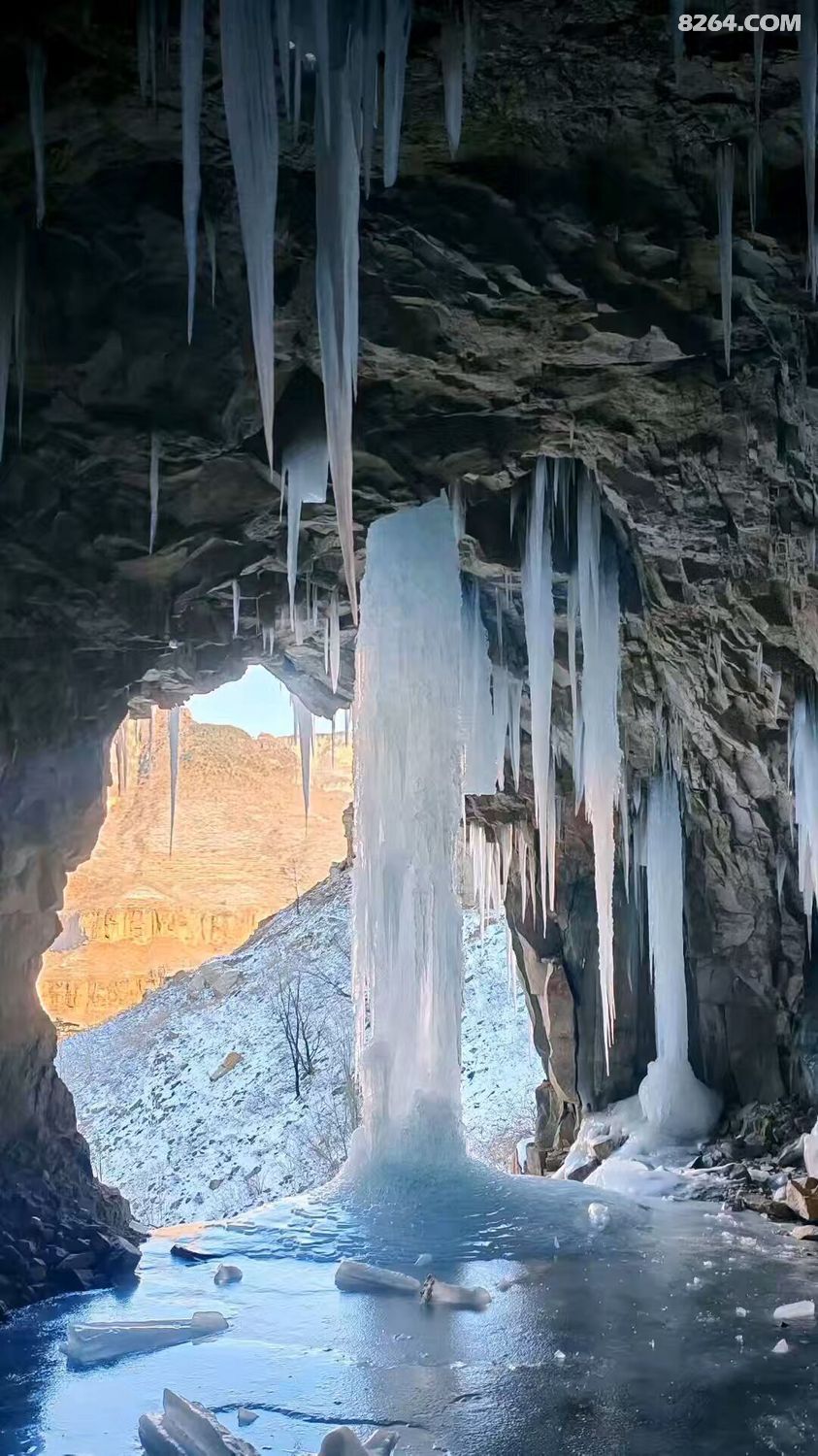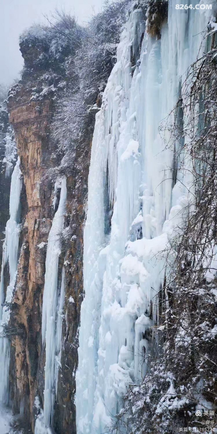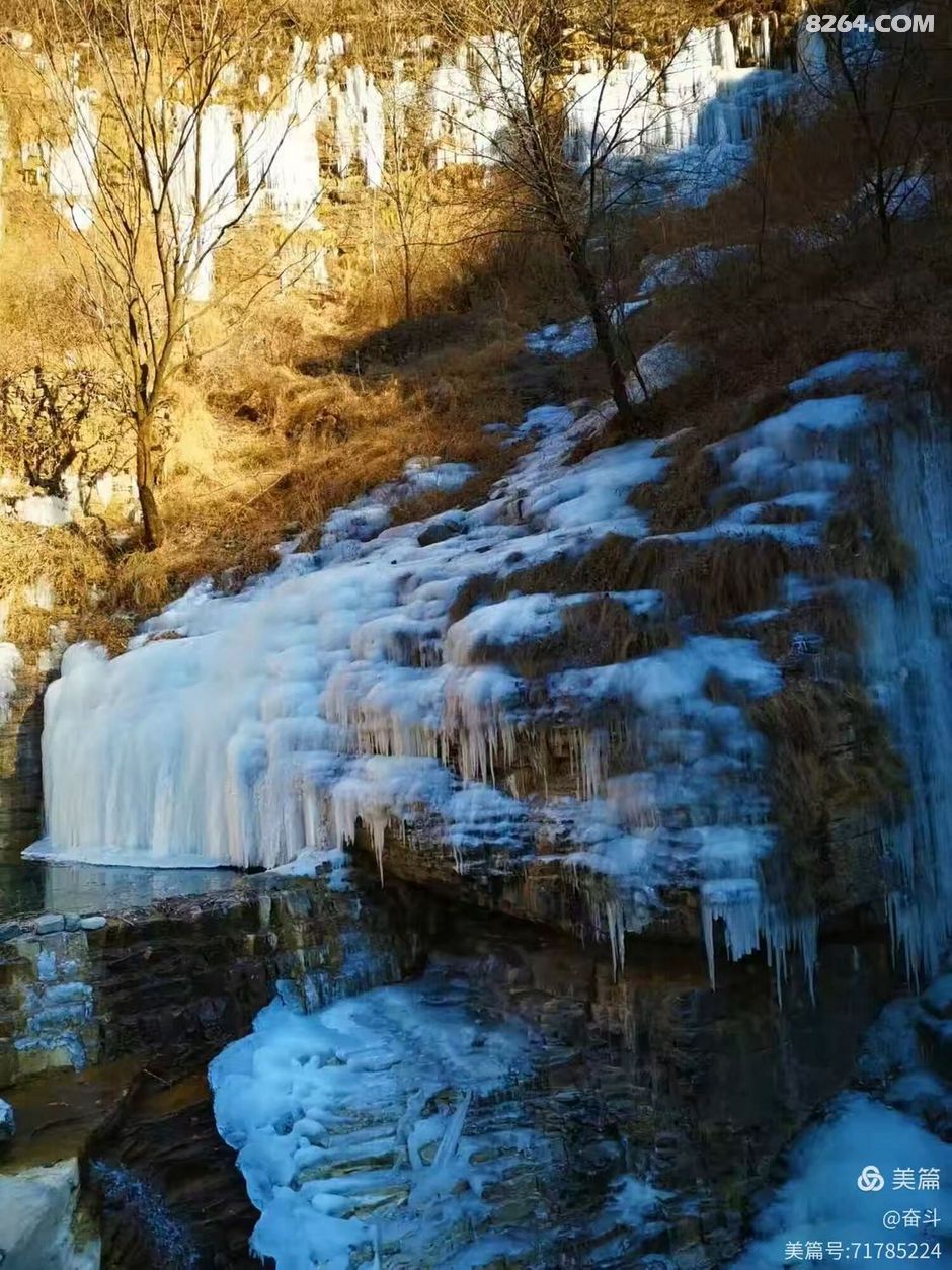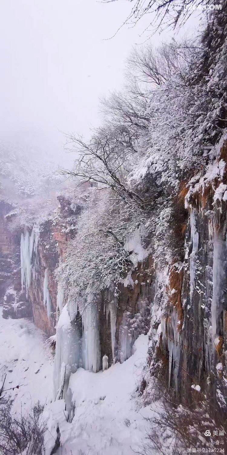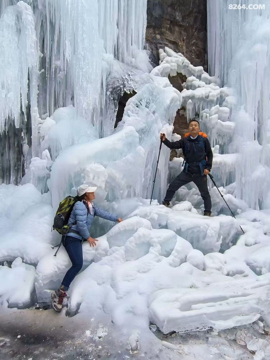总有人说远赴哈尔滨看冰是奔赴一场冰雪盛宴,可对户外人而言,太行山的冰景才是藏在山野里的惊喜,这份天然的冰雪浪漫,只需迈开双脚,就能捧在眼前。一起奔赴冬日太行,邂逅那冰雪童话吧?冬日入场券,Let's go ! 中华雪松,大自然的馈赠,位于河南省林州市石板岩镇高家台村西的仙霞谷尽头。仙霞谷海拔1400米,气候寒冷,且崖壁上方的秦光大峡谷为其提供了丰沛水源。冬季,方圆几公里内冰雪融化后的积水汇集于秦光大峡谷,顺流而下至断崖,由于崖壁并非完全垂直,瀑布后面的山体略呈弧形,壁面也有棱边层次,流水打在棱边上成三角形溅射,遇冷结冰后,渐渐形成了雪松的形态。冰瀑高达约130米,从崖顶倾泻而下,“枝干”纵横交错,枝桠错落,恰似一株扎根峭壁的参天雪松。崖壁最下端向内凹陷,形成一个冰瀑长廊,内部宽敞,漏水形成的冰柱犹如悬在崖壁上方的宝剑。 温馨提醒,去中华树通常沿仙霞谷岸上小路前行,倘若你体能尚可,带上冰爪,沿仙霞谷河道一路上行,少许小攀爬,冰瀑、冰挂、冰洞、冰墩墩,天然溜冰场……饕餮盛宴,一网打尽! |