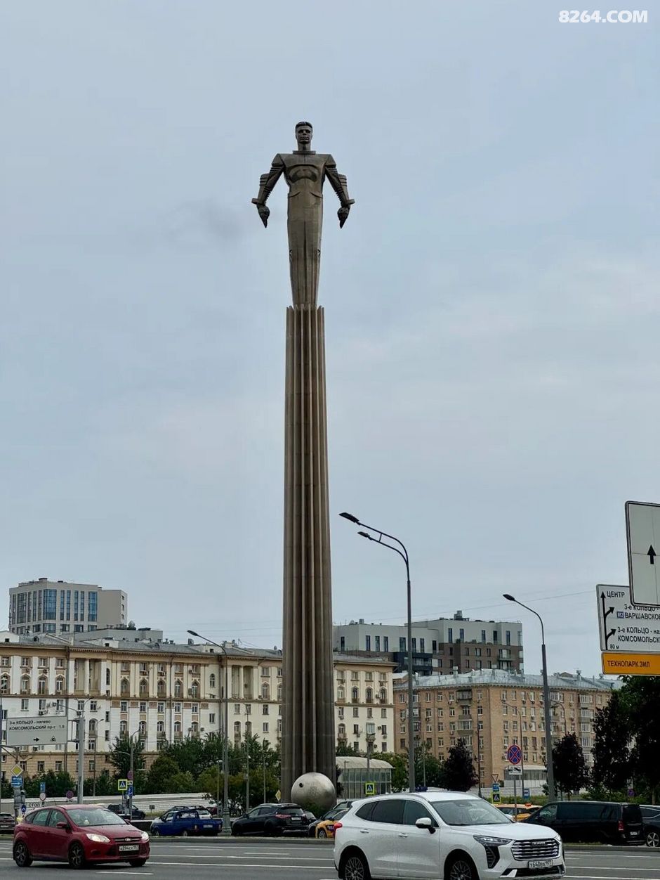 加加林的雕塑,则以一种近乎挣脱地心引力的姿态闯入视野,他身体笔直,即将飞入无垠的太空。 阳光偶尔从云隙中射出,在他钛合金的航天服上跳跃,整座雕塑仿佛仍在缓缓上升,展现着人类第一次挣脱地球束缚的狂喜与骄傲。