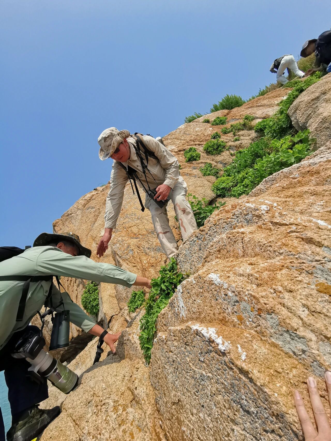 “探察无人岛只能找有经验的渔民,租用他们的小船,一一登岛摸排。在无风也有三尺浪的外海,我们常晕船吐得‘半死’。千辛万苦靠岸后,还要在无路的山崖上小心攀登、察探。稍远的岛屿,往返一趟就要10多个小时。”福建省观鸟协会专项保育小组主要成员高川笑着说,在春夏季酷热的天气里,在无遮蔽的风吹日晒下,个中滋味难以言表,但守望“神话之鸟”的决心战胜了万千艰辛。