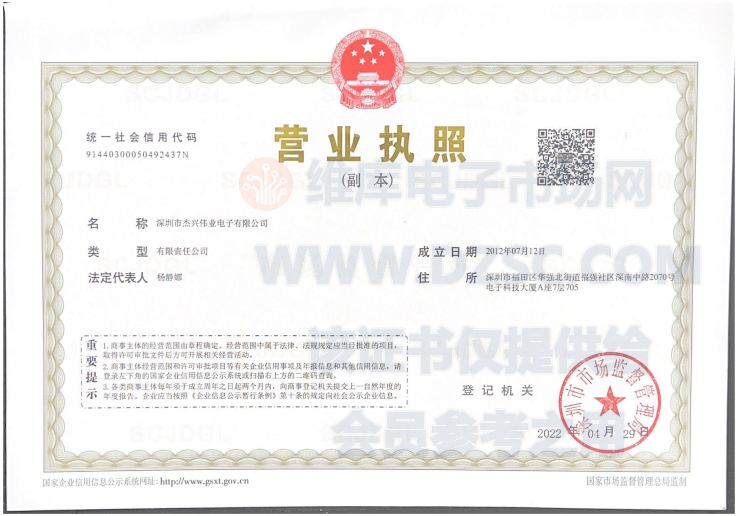 深圳市杰兴伟业电子成立于2006年,公司以高新技术为中心,致力于为客户提供一站式电子元器件线上线下采购服务。全产业链自营服务涵盖:台湾及国内各大品牌代理、JSMSEMI杰盛微 、CJ长电、LTV光宝、EL亿光、UTC友顺/YW友旺、CSC录华、PADAUK应广、PANJIT强茂、SLAM士兰微、FM富满、INJOINIC英集芯、 世界500强工厂库存现货、进口各大品牌优势渠道订货包含:HTC、TI德州、ADI艾德诺、Linear凌特、ST意法、FCS/ON、IR等。 作为一家品种齐全、自营库存、质量有保障的电子元器件现货服务商,杰兴伟业所有元器件均从原厂或代理商正规渠道采...
