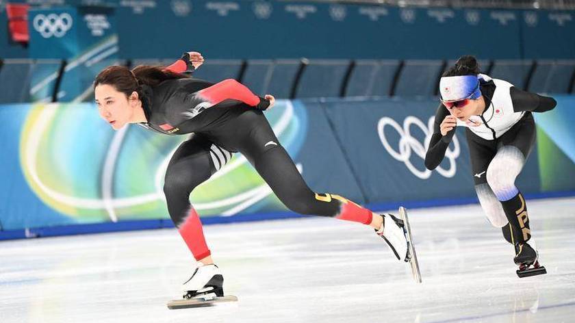 冬奥速度滑冰赛前训练 韩梅高木美帆适应场地