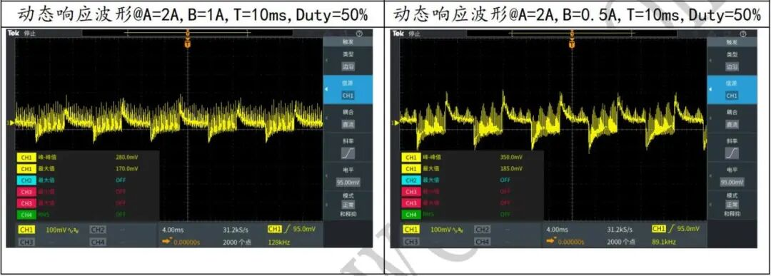 当Vin=48V,Vout=5V,动态响应波形如下: