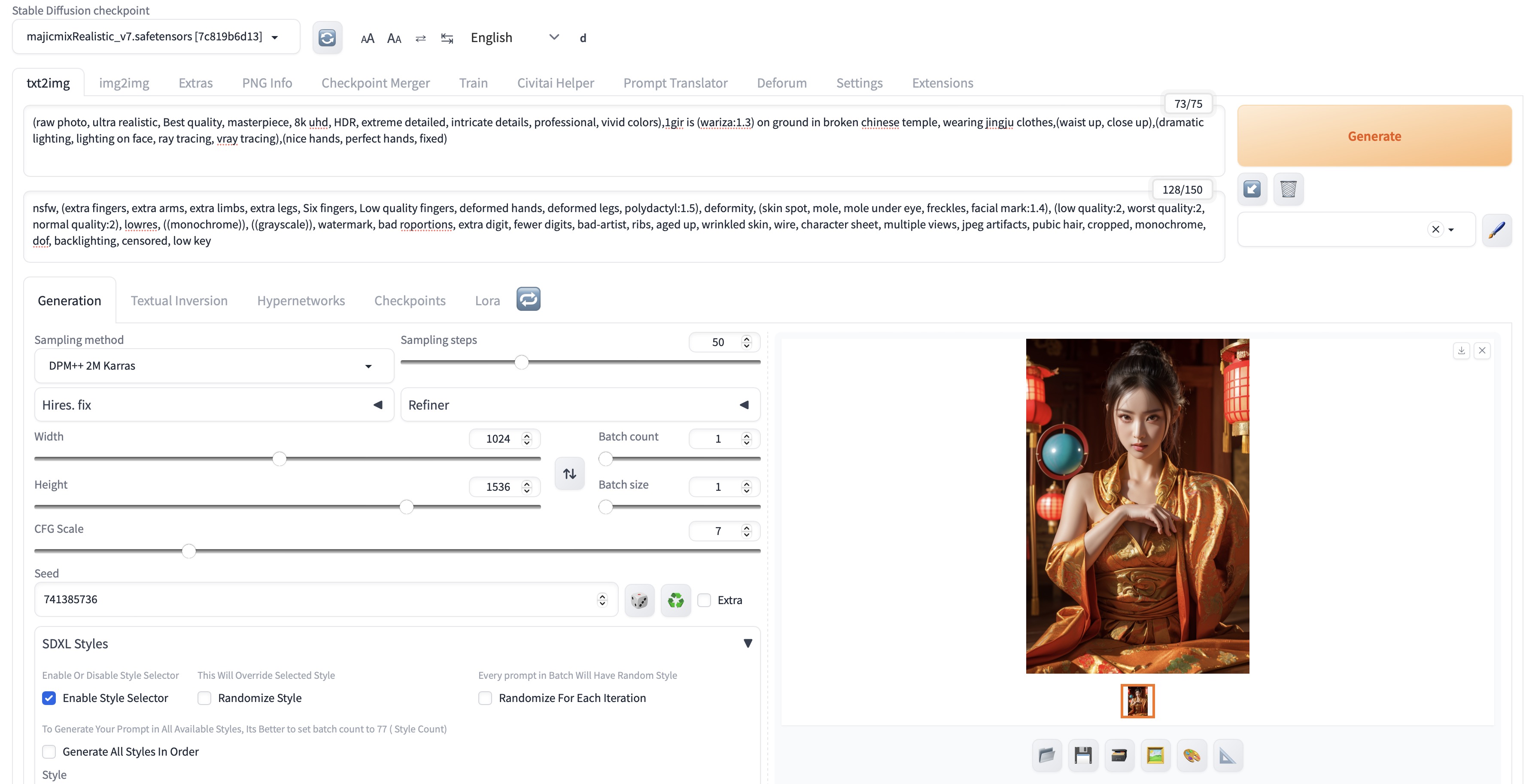 平台内置了热门的AIGC应用(例如Stable Diffusion Web UI),用户无需安装,就可以一键启用开始创作。Stable Diffusion内置了丰富的模型和LoRA插件。