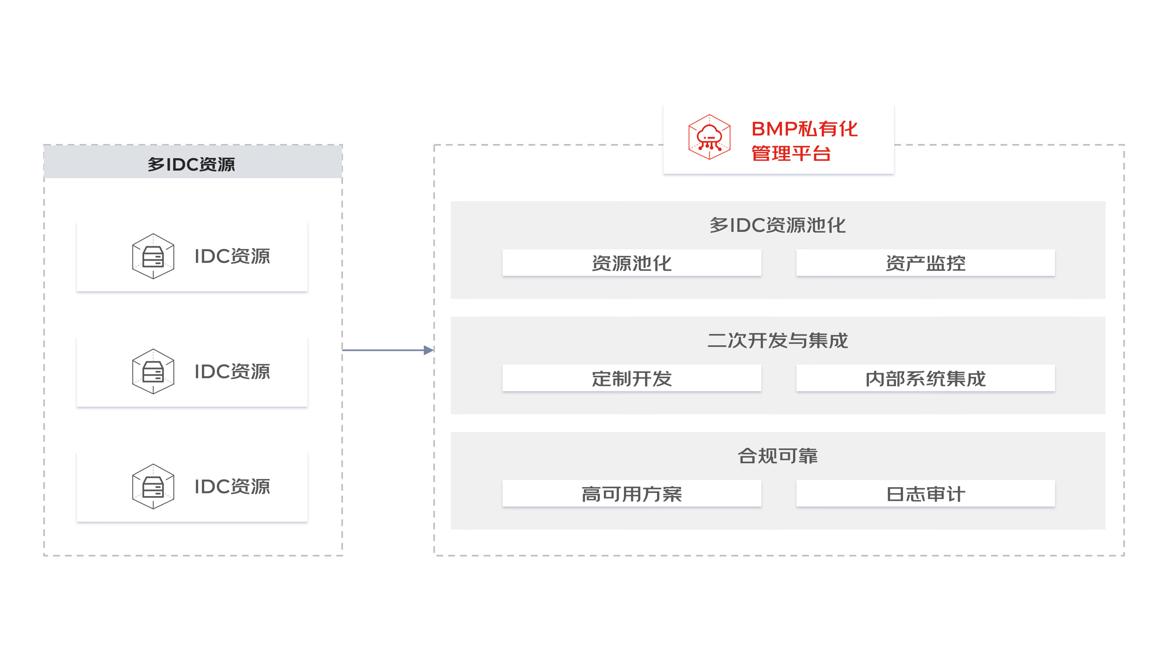 多IDC资源池化:通过订阅企业版,支持多IDC资源统一池化管理,可实时监控资产使用情况 二次开发与内部系统高度集成:利用专业的定制开发服务,将企业ERP、工作流、成本核算系统与管理平台高度集成,完成资源申请、审批、成本归集全流程 合规可靠:利用平台的日志审计能力,满足强合规要求;利用专业高可用方案,保障平台稳定可靠