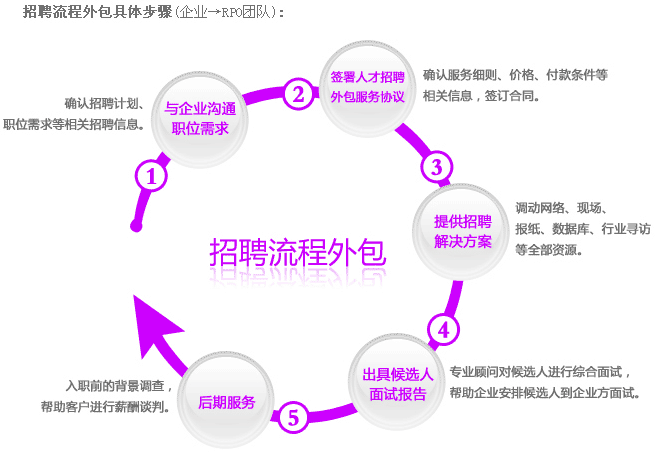 ◆一览RPO团队主要为客户提供招聘环节中的部分或全部的专业多样化招聘服务,为客户提供从获取职位需求到找到合适的候选人就职的整体招聘解决方案,包括专业访寻,人才管理系统,流程化的招聘技巧及定期招聘管理报告等系列服务。