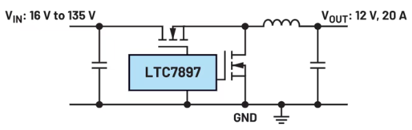 图2. 工作电压可达135 V的LTC7897降压控制器(简化电路)
