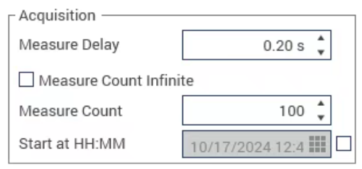 采集(Acquisition)设置包括Measure Delay(测量延迟)和Measure Count(测量次数)的控制。其中Measure Count(测量次数)应设置为要测试的电阻数量。