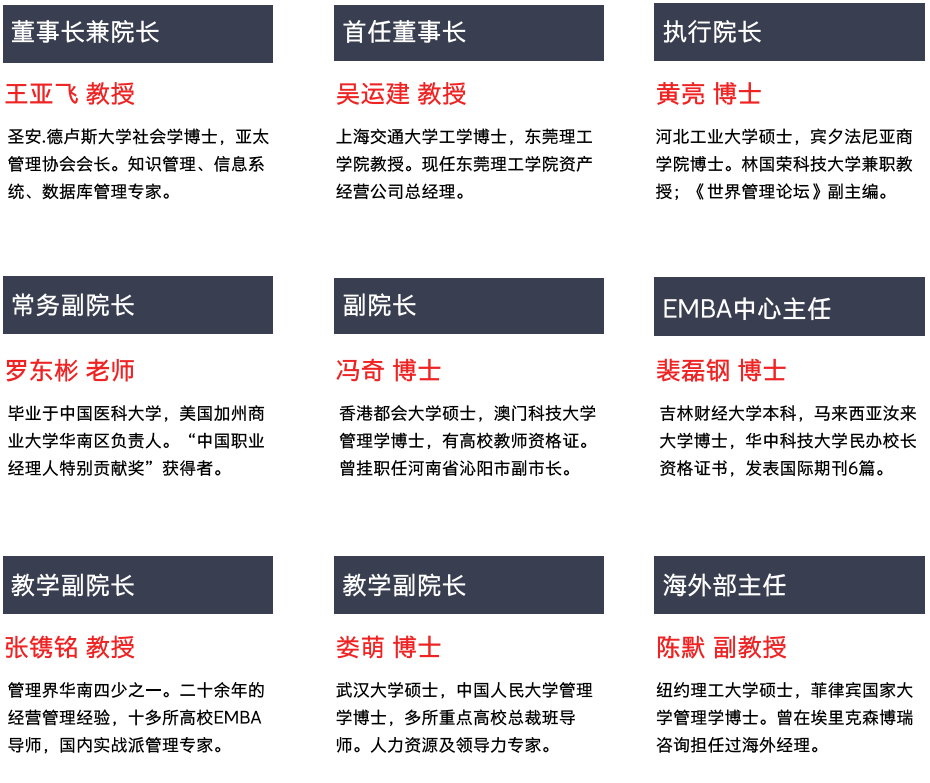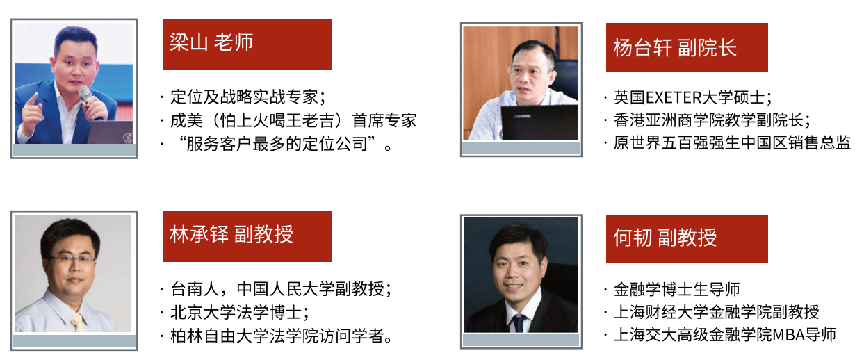 导师团队:亚商线上线下EMBA导师团队在国内商学教育领域是一流的。