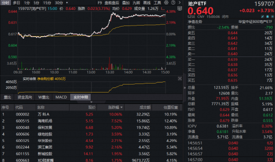 热门ETF方面,全市场唯一跟踪中证800地产指数的地产ETF(159707)午后超跌反弹,收涨3.73%领涨全市场,放量成交超7700万元。资金单日大幅净申购4050万份,此前已连续四日加码!