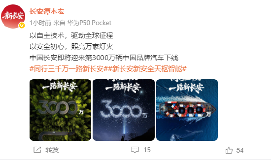 长安谭本宏:中国长安即将迎来第3000万辆中国品牌汽车下线