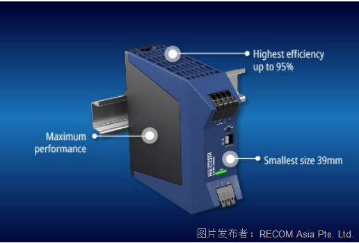 RECOM 推出具有峰值功率输出且集成 ORing 二极管的 DIN 导轨 AC/DC 电源。