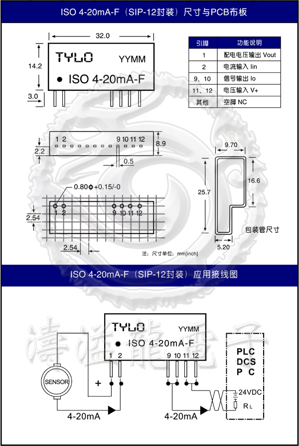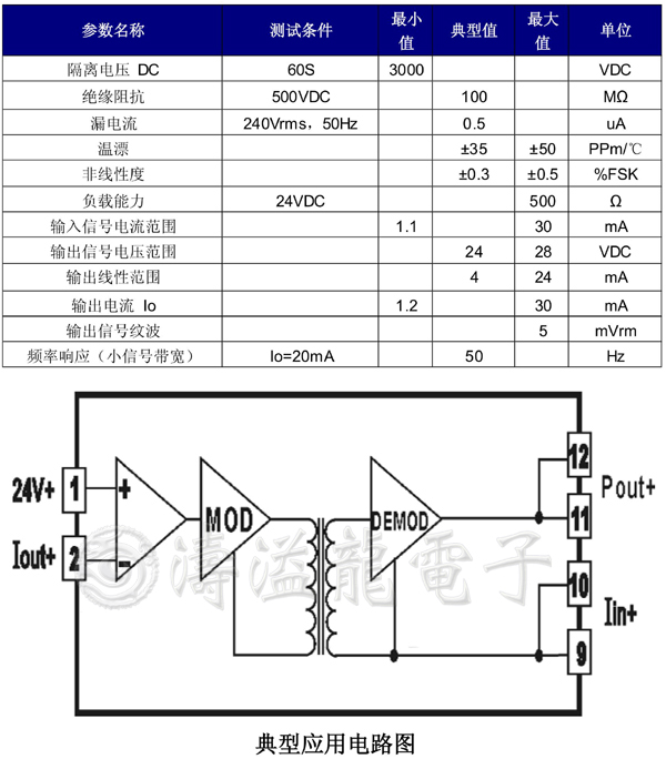 特 点:此小IC模块实现两线制无源传感器的信号隔离、传输和配电功能