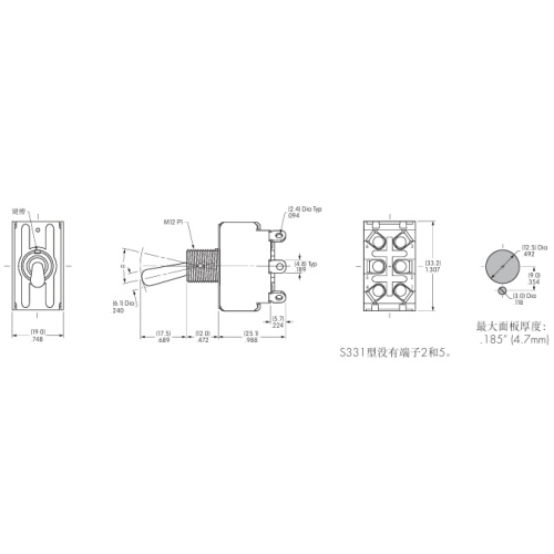 防静电摇头开关纽子开关电路图〓安装尺寸图