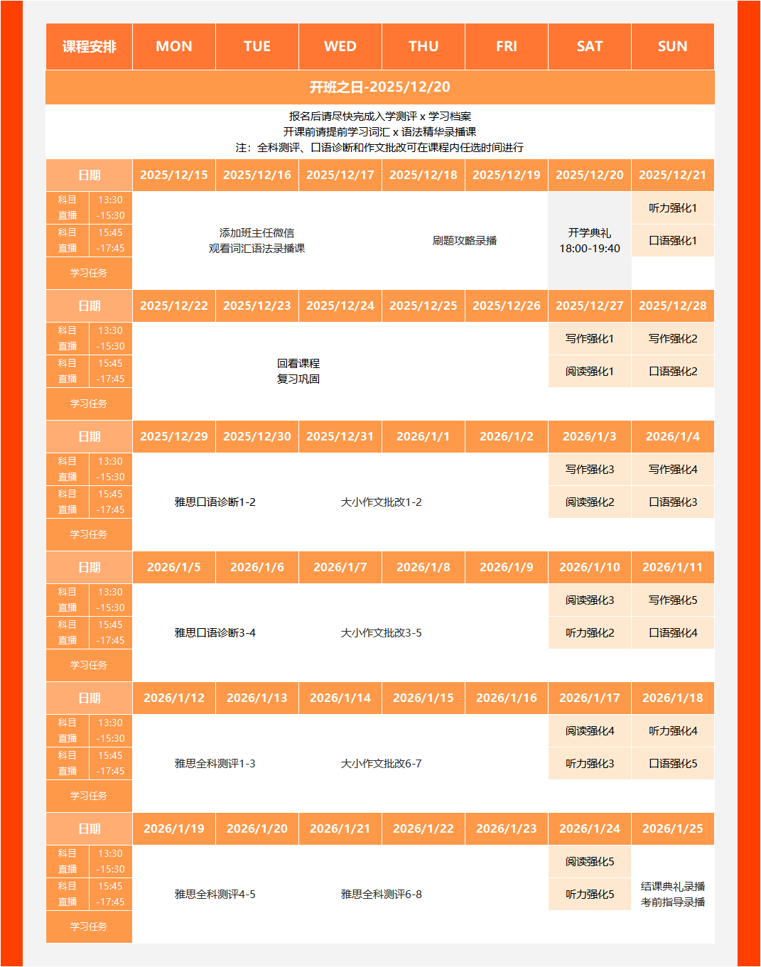 雅思30天直播班(25年12月20日开班,周末下午班)