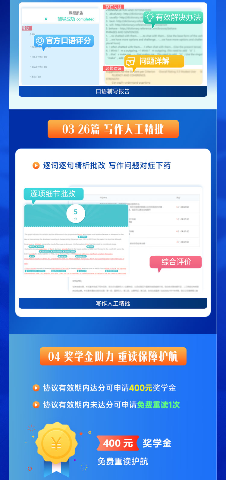 免费重读学完课程参加考试,未达目标分数且满足协议条件,享受免费重读。