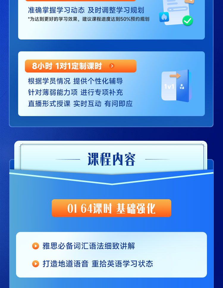 1对1定制课时通过1V1定制课时,补足英语基础或强化考试薄弱科目能力。