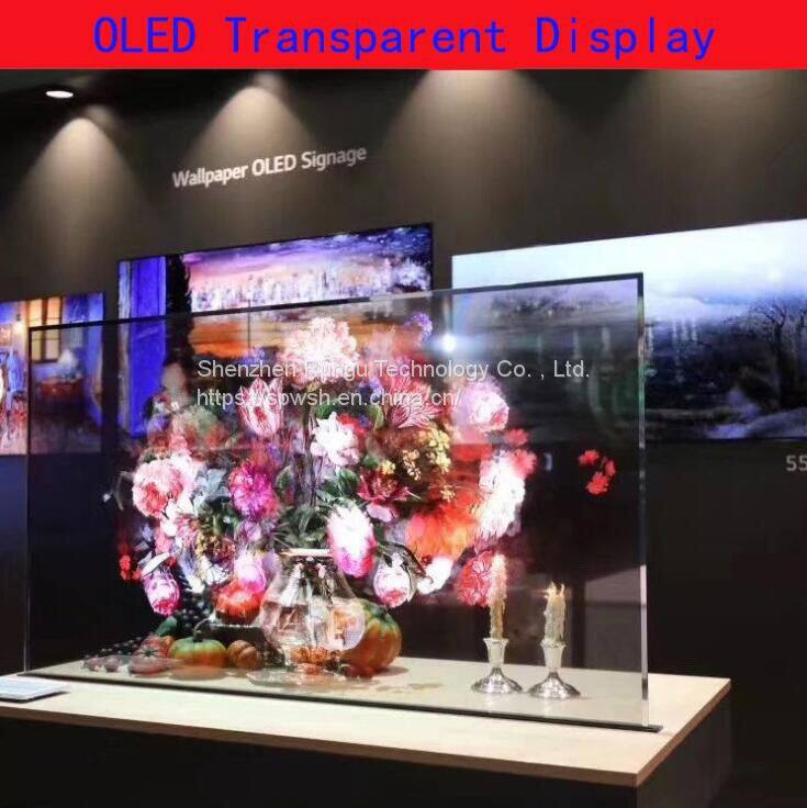 The 55-inch transparent OLED screen adopts the cutting-edge organic light-emitting diode (OLED) self-luminous display technology, which subverts the backlight or backplane structure required by traditional display screens, allowing a truly transparent display to be installed with a visible frameless glass design become possible. The transparent OLED screen has bright and vivid colors, greater than the 100% effect of NTSC (National Television Systems Committee), and has wide viewing angles with no off-axis contrast or brightness limitations. The display is FullHD for beautiful pictures and full motion video.