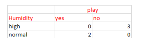对于上表中的湿度(Humidity),如果湿度正常(normal),则因变量为“Yes”;如果湿度高(high),则因变量为“No”。与上面方法类似,我们可以找到下雨(Rain)的子节点。