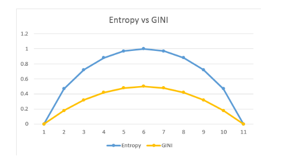 基尼不纯度的下界为0,如果数据集仅包含一个类别,那么基尼不纯度则为0。