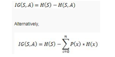 信息增益可以定义为随机变量或信号通过观察另一个随机变量所获得的信息量,其可以被视为父节点的熵与子节点的加权平均熵的差。