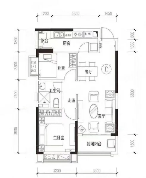 3 室 2 厅 1 卫