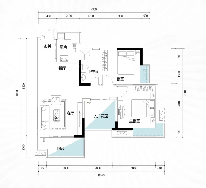2 室 2 厅 1 卫