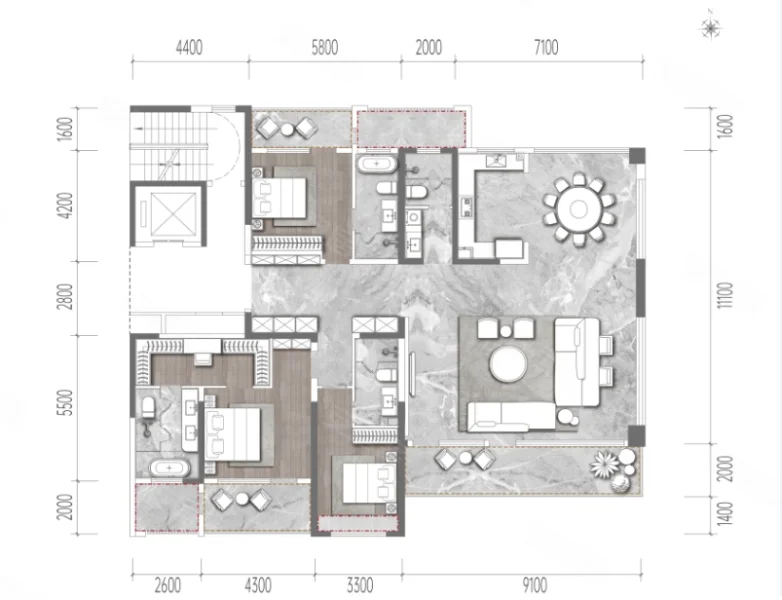 4 室 2 厅 3 卫
