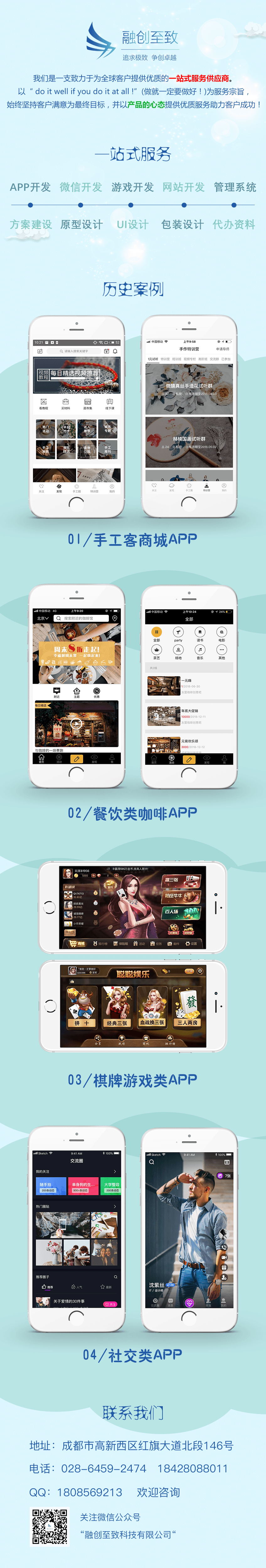 成都融创至致科技有限公司,成立于2015年11月,是一家从事于软件技术研发与产品运维的高新技术公司。在移动应用、PC应用、设计等领域拥有主流的研发技术,曾研发并成功运维了衣适衫、搜达有才、手工客等客户软件产品,促使客户拿到多轮融资。技术研发实力雄厚,产品运维经验丰富。与电子科技大学、西华大学、瑞联电气股份、新加坡电信、阿里云、网易云信等达成长期战略合作关系。