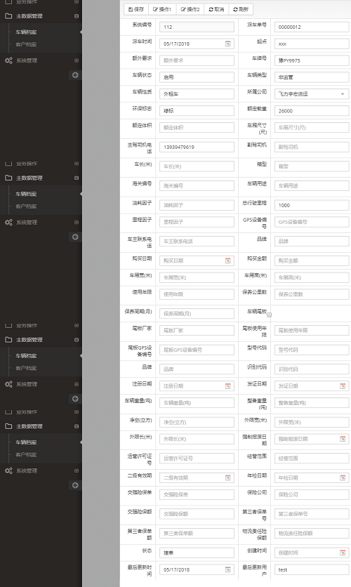 车辆档案管理。可以扩展车辆的保险,事故,油卡等管理