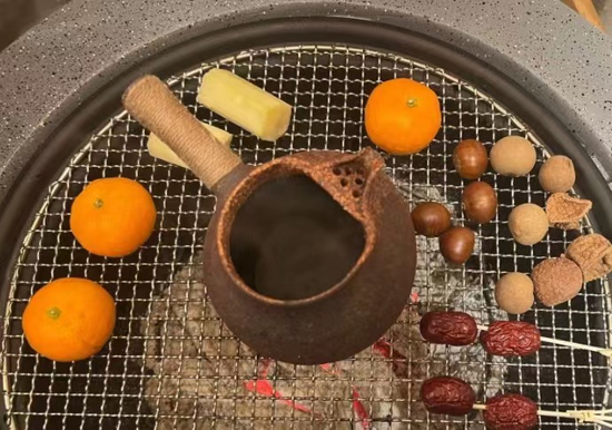 圆润的小茶壶里泡着口味醇厚的茶,泥炉中闪着红亮的炭火,大枣、柿子、橘子,甚至是棉花糖,在冬火的烘烤下散发出独特的香气。这是最近非常时兴的一种休闲活动,围炉煮茶。
