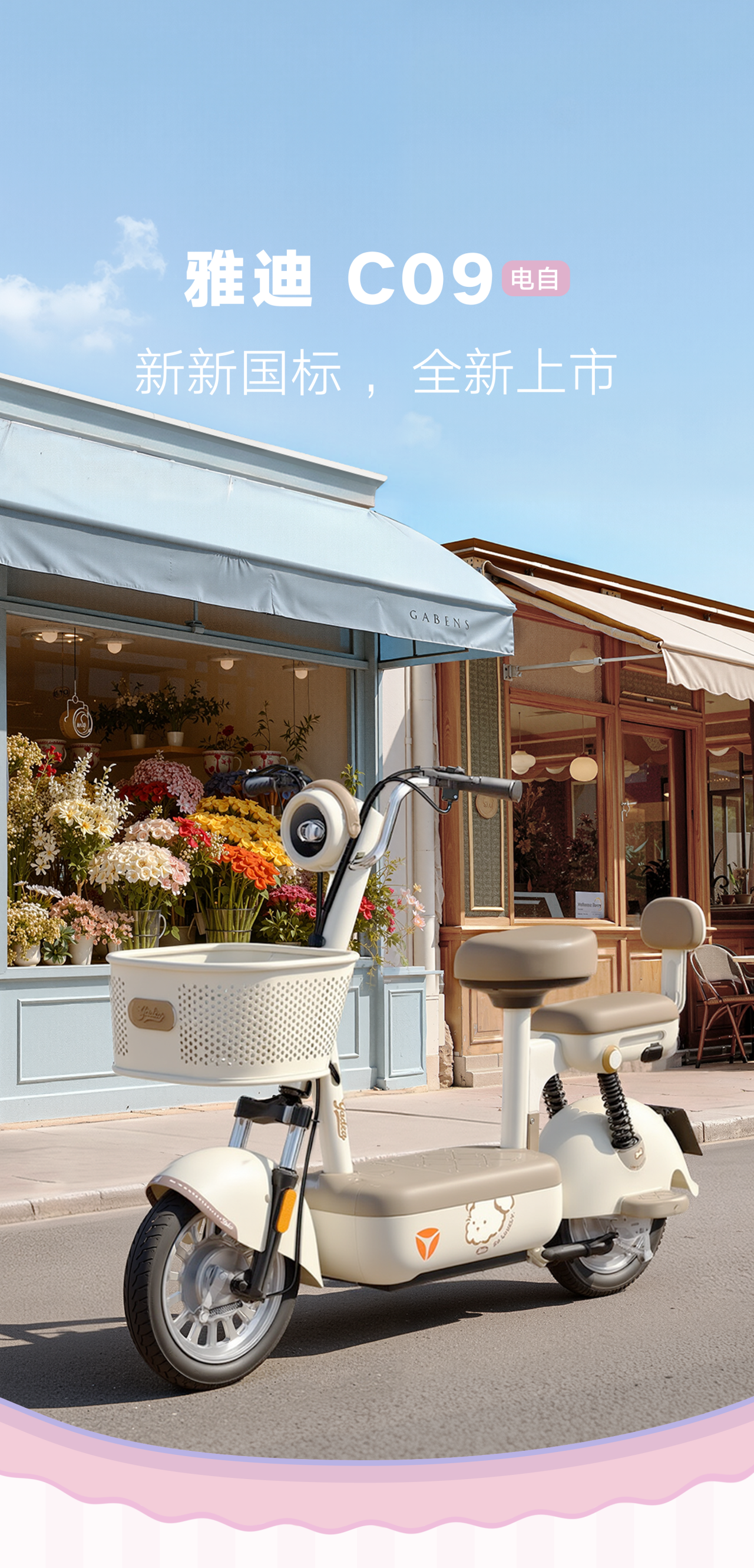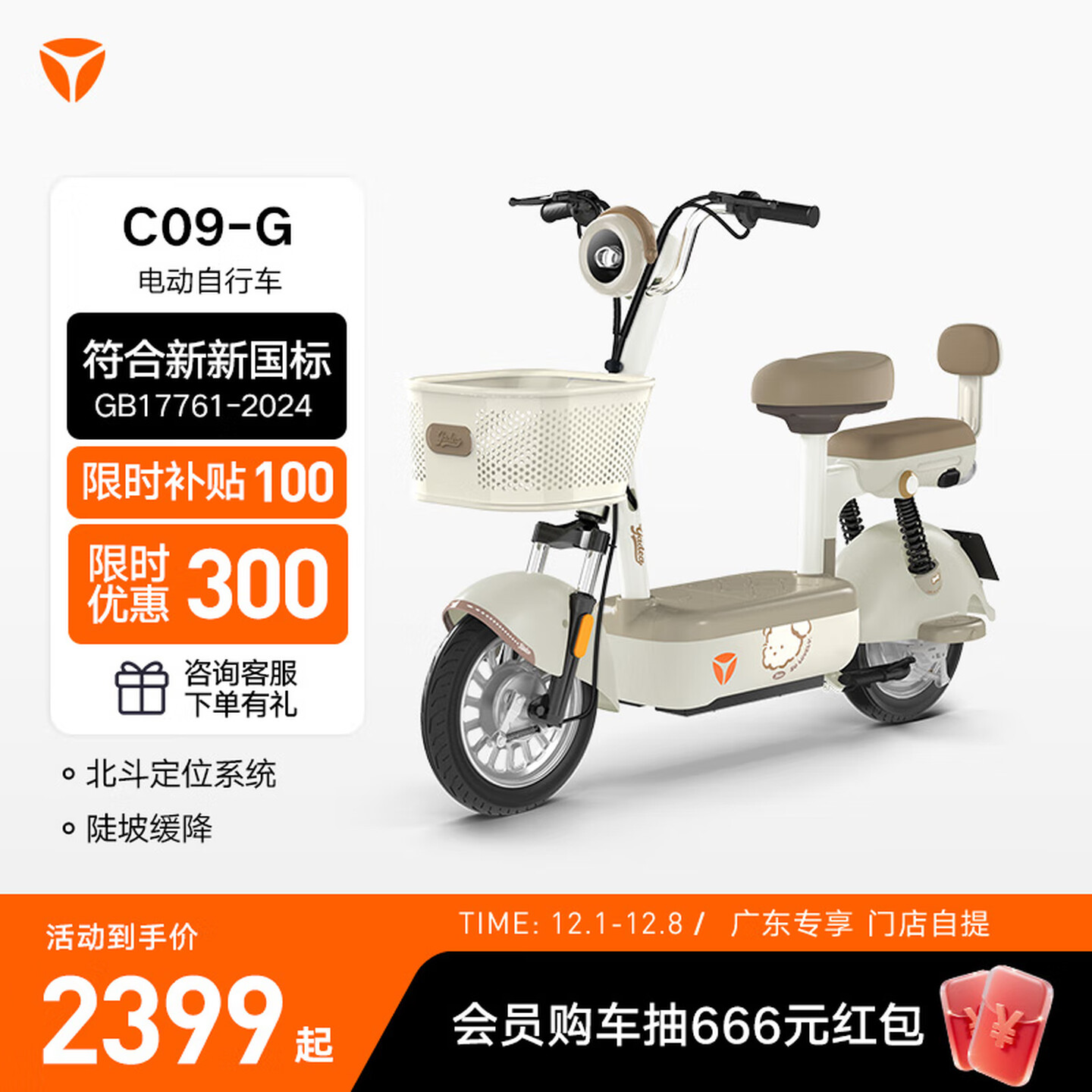 IT之家 12 月 6 日消息,雅迪电动车今日宣布,新新国标车型 C09 全新上市,京东旗舰店显示首发价 2399 元。新车提供了卡其米棕、独角兽灰两款配色,新颜色会陆续上新。
