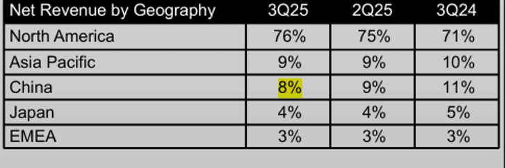 即便受外部管制政策影响,2025年第三季度大陆市场仍为台积电贡献约 8%的营收 ,此前这一比例长期稳定在 10%-15%区间。